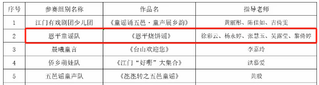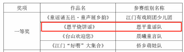 喜报 | 祝贺我馆选送作品《恩平烧饼谣》荣获第五届江门艺术季“童声童趣”五邑童谣诵读展演活动一等奖