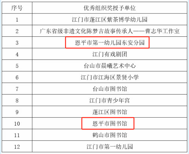 本次获奖不仅展现了少年儿童对恩平本土文化与童真生活的热爱,还将本土文化资源通过童谣诵读展演方式展现,吸引更多少儿广泛参与阅读,丰富公共文化服务内涵。