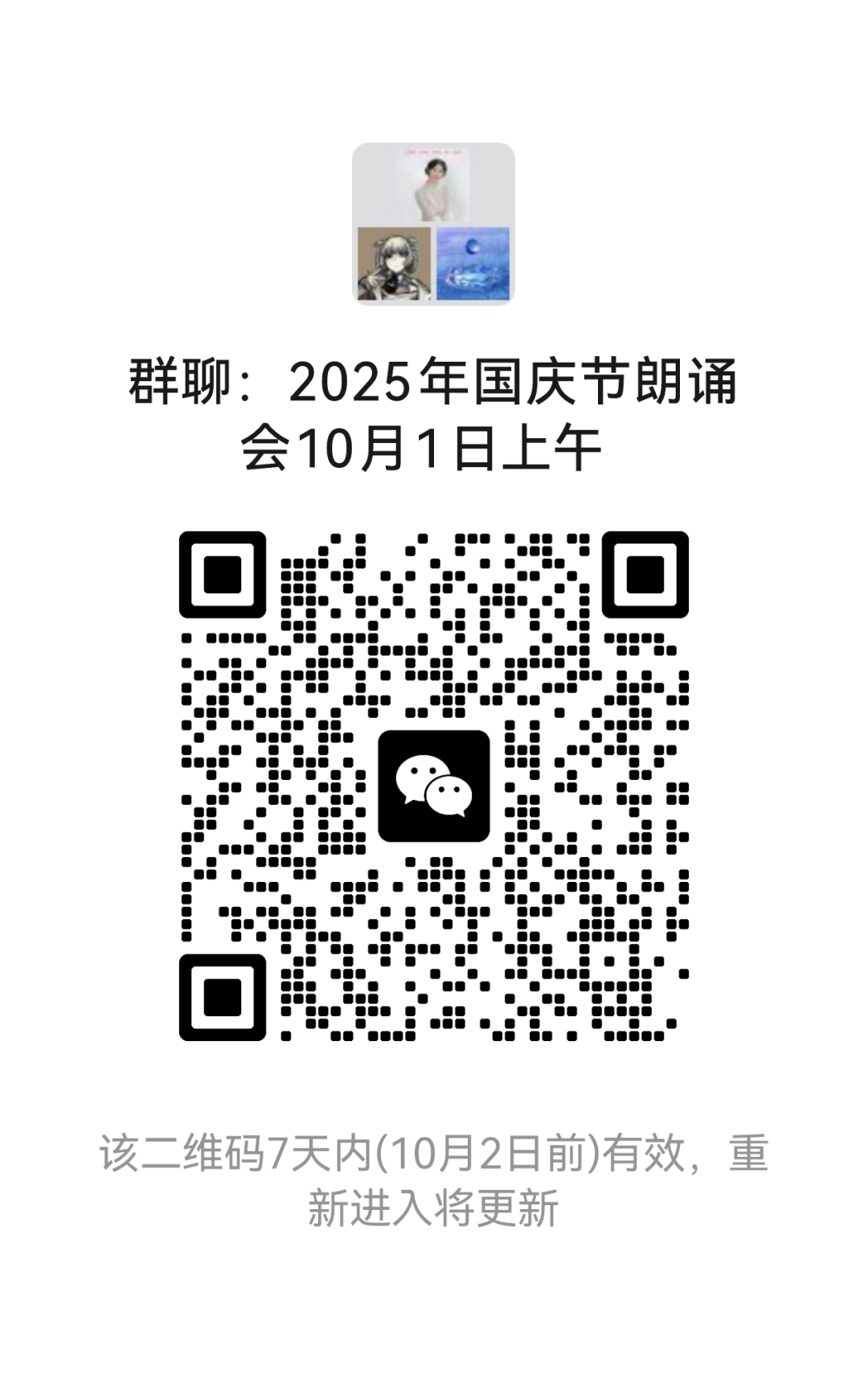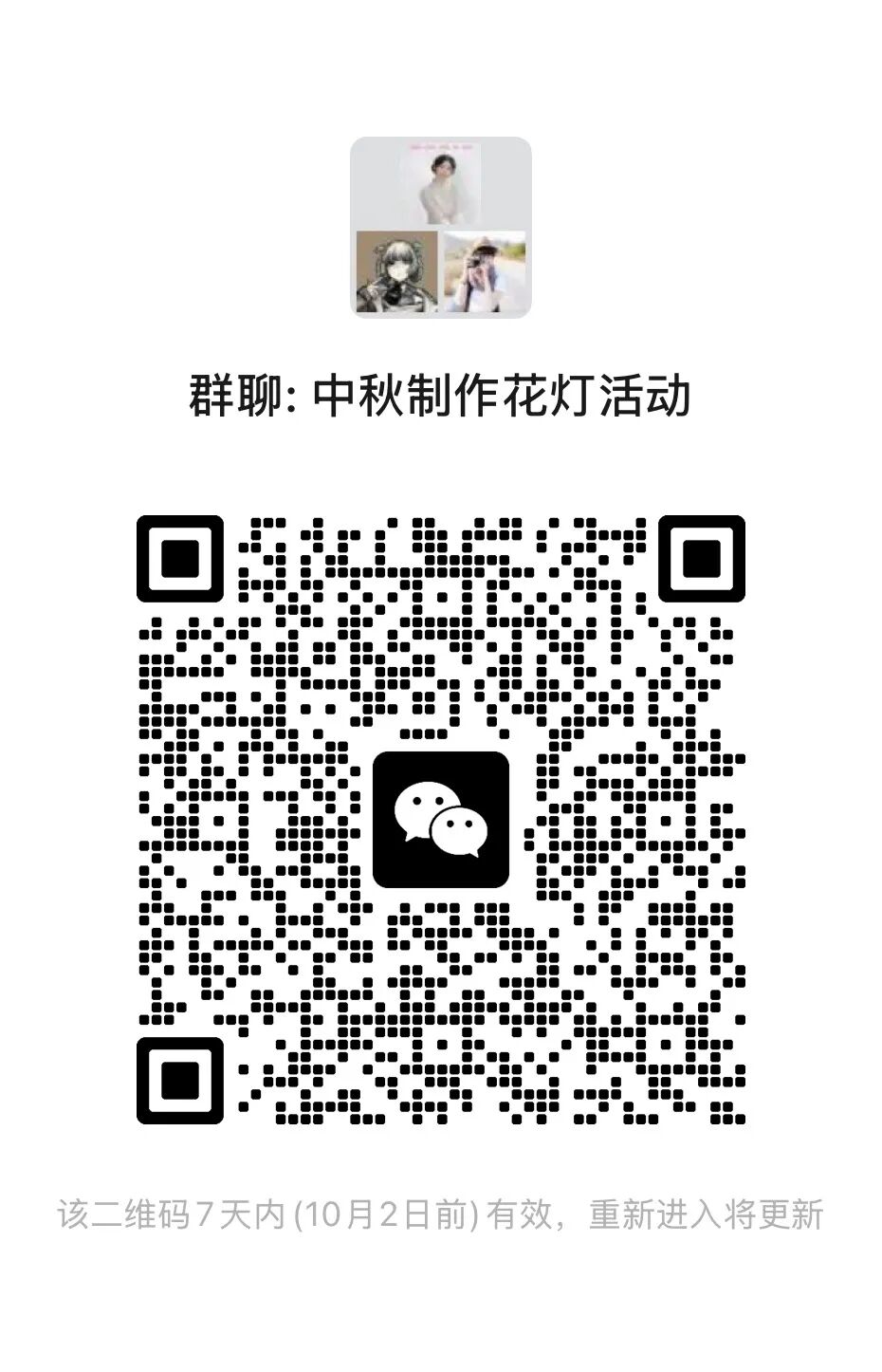 “我和我的祖国”诵读会 参与读者选取爱国主题的诗歌、散文等作品进行朗诵,用真挚的情感、激昂的声音表达对祖国的热爱和祝福,为祖国母亲献上最深情的告白。 活动时间: 2025年10月1日上午9:30至11:00 活动地点: 恩平市图书馆四楼报告厅 活动对象: 20组亲子家庭 弘扬传统文化、厚植家国情怀。这里既有关于祖国发展历程、红色历史的时代考题,也藏着中秋民俗、诗词典故的文化密码。每一道题目都是一次与历史的对话,一次对传统的探寻,我们期待以竞答为纽带,让大家解锁中秋民俗、重温祖国历程,在趣味互动中增强民族自豪感,共赴双节文化之约。 活动时间: 2025年10月1日至10月8日 活动地点: 恩平市图书馆微信公众号(线上) 活动对象: 所有读者 红色电影展播 活动时间: 2025年10月2日上午9:00至11:00 活动地点: 恩平市图书馆四楼报告厅 活动对象: 12—18岁青少年30人 “花灯映月书香贺中秋”手工制作活动 活动时间: 2025年10月5日上午9:30至11:00 活动地点: 恩平市图书馆四楼报告厅 活动对象: 20组亲子家庭 报名方式 扫描下方二维码即可进入报名页面,9月30日中午12点截止报名,因名额有限,先报先得。家长和孩子的姓名在报名表中一定要填写清楚。 电影 朗诵 手工 入群方式 报名成功的家长,请扫描下方二维码入群,了解活动细节。其他读者请不要进入群。 电影 朗诵 手工 温馨提醒 1.填写报名信息时,一次即可,请勿重复填写。 2.报名成功的读者,请于活动当天提前10分钟进场,活动期间请听从工作人员安排。 3.由于活动名额有限,请报名成功的家庭组务必参加。如因个人原因不能参加的,请提前一天向老师请假,取消名额。