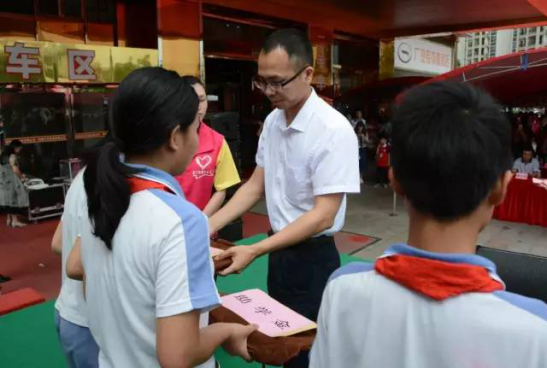 活动现场,还进行了助学金和礼物发放仪式,与会领导嘉宾分别上台为受助的20位学生送上书包等礼物。