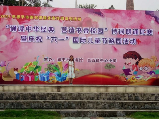 5月22日下午,在恩平市良西镇中心小学举行了“诵读中华经典,营造书香校园”诗词朗诵比赛暨庆祝“六一”国际儿童节游园活动。