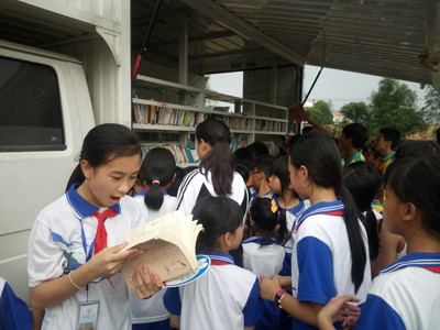 比赛结束后,同学们都纷纷到图书馆的流动书车上借阅图书,流连在书海中。同学们脸上幸福的笑容,正演绎着我读书我快乐的真谛。