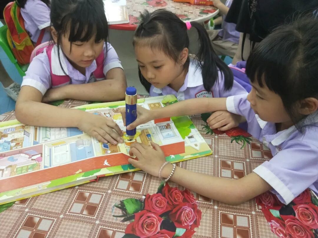 孩子们通过点读绘本中的钢琴书、玩具书等不同的图书种类,让小读者感受不一样的阅读体验。