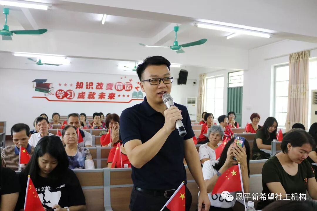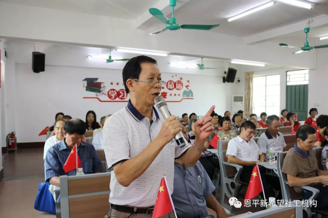 观看之后,由成员单位恩平市第一中学党员教师带来了《我和我的祖国》,伴随着《我和我的祖国》音乐响起,现场70余人爱国的歌声从心里唱出来,齐齐以歌声表白祖国。主题教育活动在全体党员群众共同合唱《我和我的祖国》的歌声中落下帷幕。