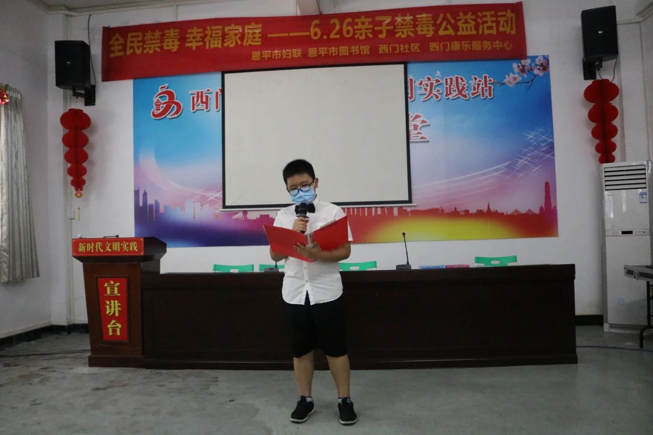 “6·26”国际禁毒日即将来临,为做好全民禁毒宣传月活动,提高青少年识毒、防毒、拒毒的意识和能力,6月20日下午,恩平市妇联、恩平市图书馆、西门社区联合恩平市新希望社会工作服务中心开展“全民禁毒 幸福家庭”--6.26亲子禁毒公益活动。