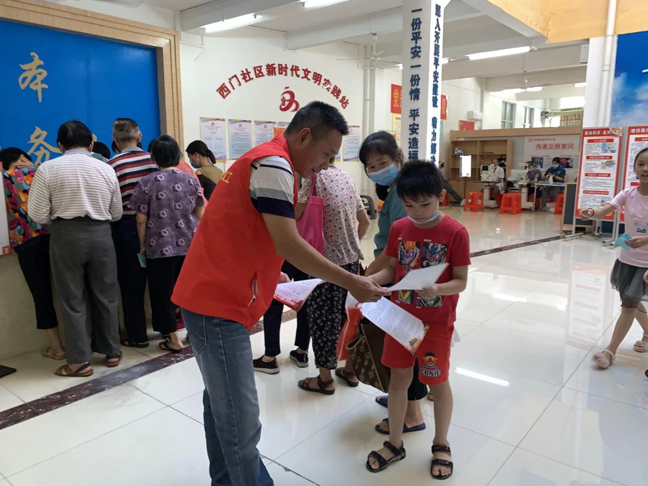 西门社区党委书记吴伟毅向小朋友宣传预防毒品知识